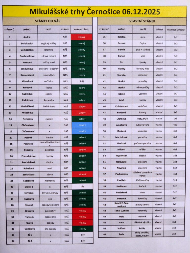 INFORMACE PRO TRHOVCE – MIKULÁŠSKÉ TRHY ČERNOŠICE_06.12.2025